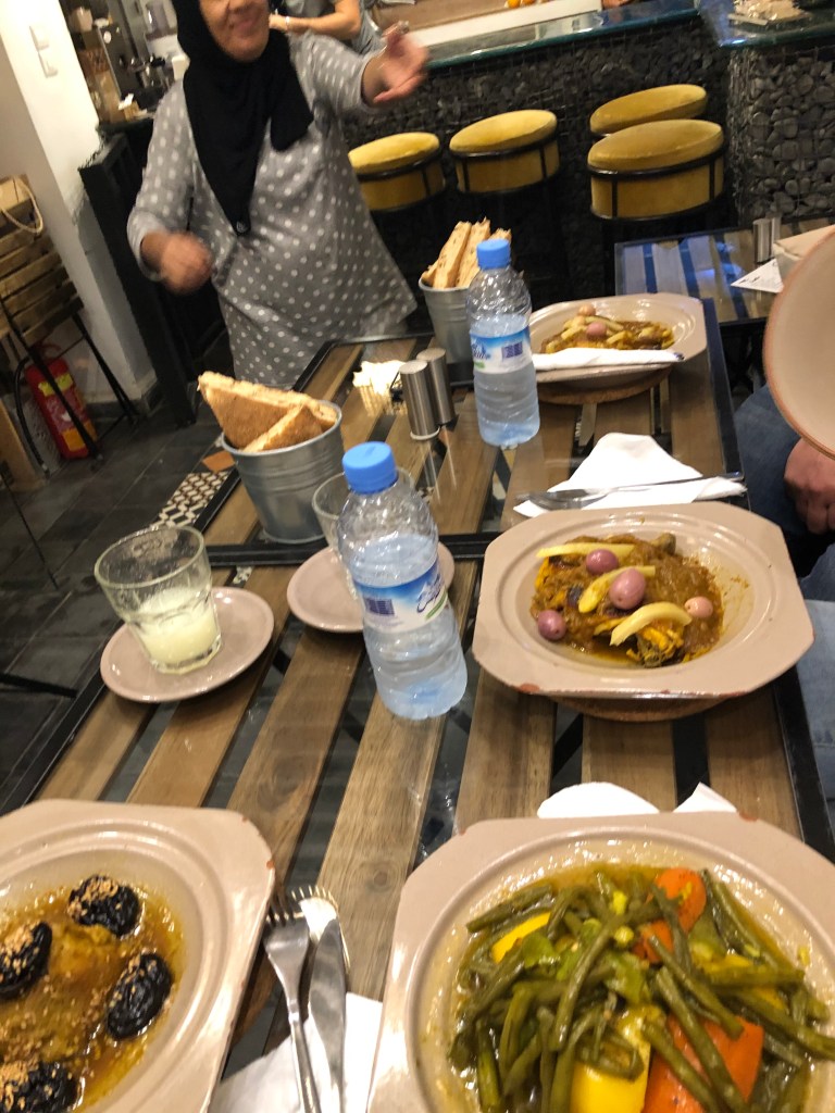En soirée, on répète la recherche d’un restaurant, qui cette fois ci se trouvent littéralement dans la zone touristique à l’entrée de la Porte bleu de la Médina. Il y a un festival dans la rue, et marcher est vraiment compliqué. C’est cool à voir, mais on comprend rien de ce qui se passe.