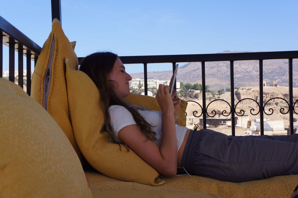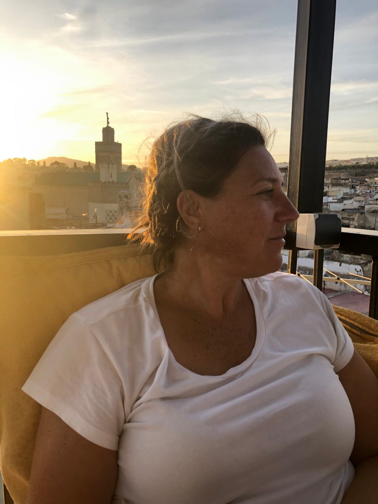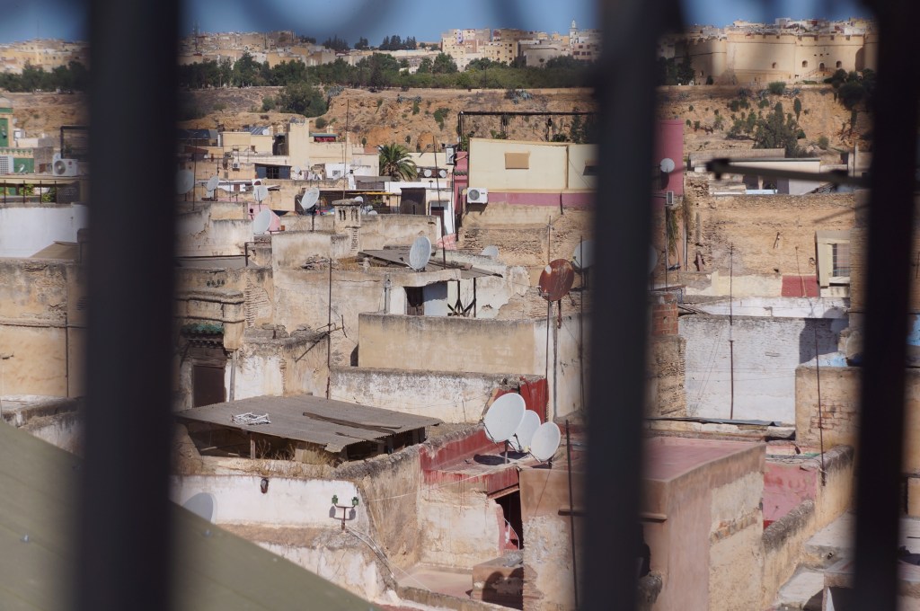 Les tanneries de Fès sont quand même réputés, pour leur bassins colorés, et Annik aimerait bien les voir. Moi, j’ai pas tellement le goût parce que je sais que la visite de la terrasse au dessus des bassins, va venir avec l’achat d’un blouson de cuir. Qu’est-ce que tu veux, j’ai l’air d’une patate au four avec ça sur le dos.