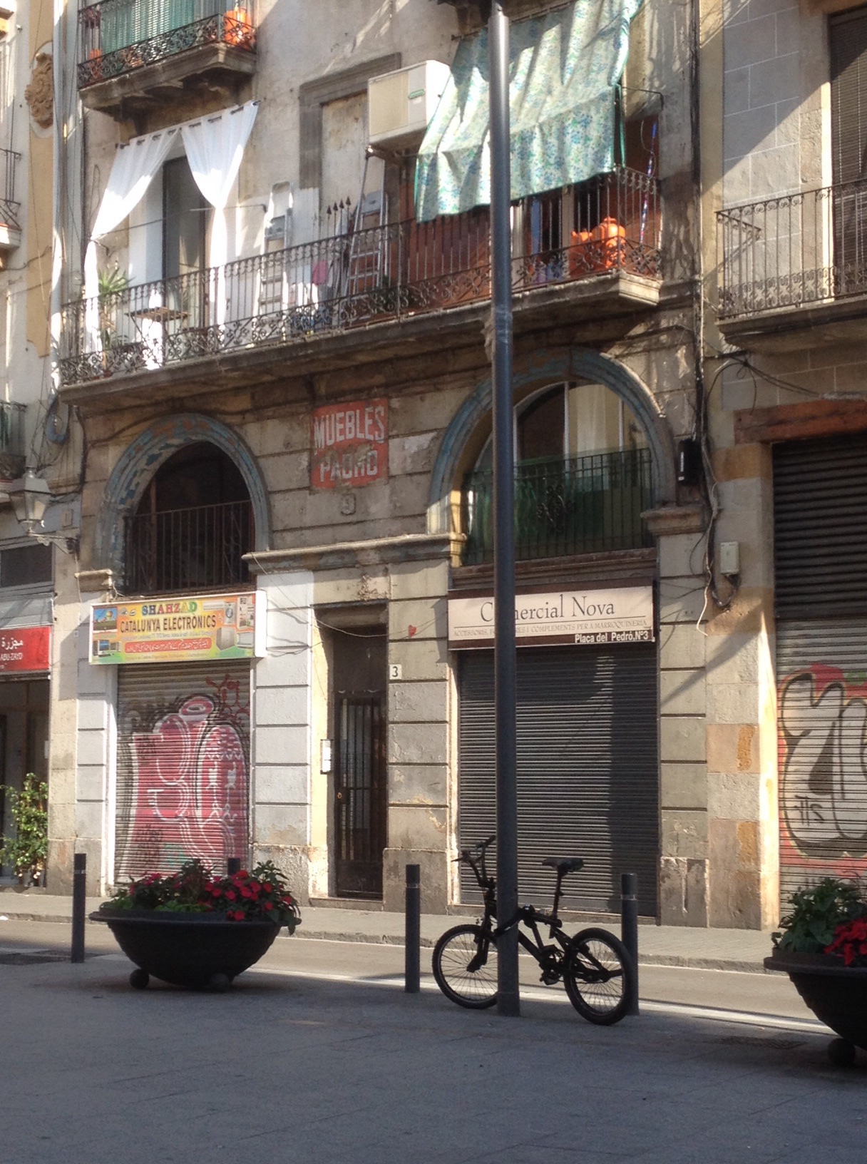 Annik est honnêtement complètement découragée de l’endroit. Elle a eu les larmes en voyant la beauté de la ville et les enfants roulant à travers les voitures de Barcelone. Maintenant, elle pleure ce mauvais choix. Elle espérait un endroit « cosy » avec terrasse, mais il faudra faire avec un endroit « vomi » et dégueulasse. L’appartement est partagé avec deux autres chambres. Nous nous séparons les espaces communs, mais nous n’avons vu personne d’autre encore sauf pour les nombreux bas mouillés et puants que nous faisons sécher sur les antennes de la télévision.