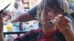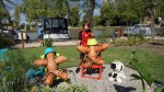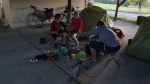 On retourne à notre site, et équipé de tie wrap, d’une tournevis et d’un rouleau de Duck Tape, Patrick confectionne avec les enfants, des poignées sur cette fameuse pièce de carton. Le voisin, qui est ingénieur pour une grosse firme militaire et qui travaillait anciennement sur les fusées Ariane, nous trouve très drôles. On lui demande si ils se servent autant de Duck Tape dans les fusées. La réponse vous surprendra, mais non – c’est pourtant si pratique! (Peut être à l’agence spatiale indienne ou dans les missiles nord-coréen?)