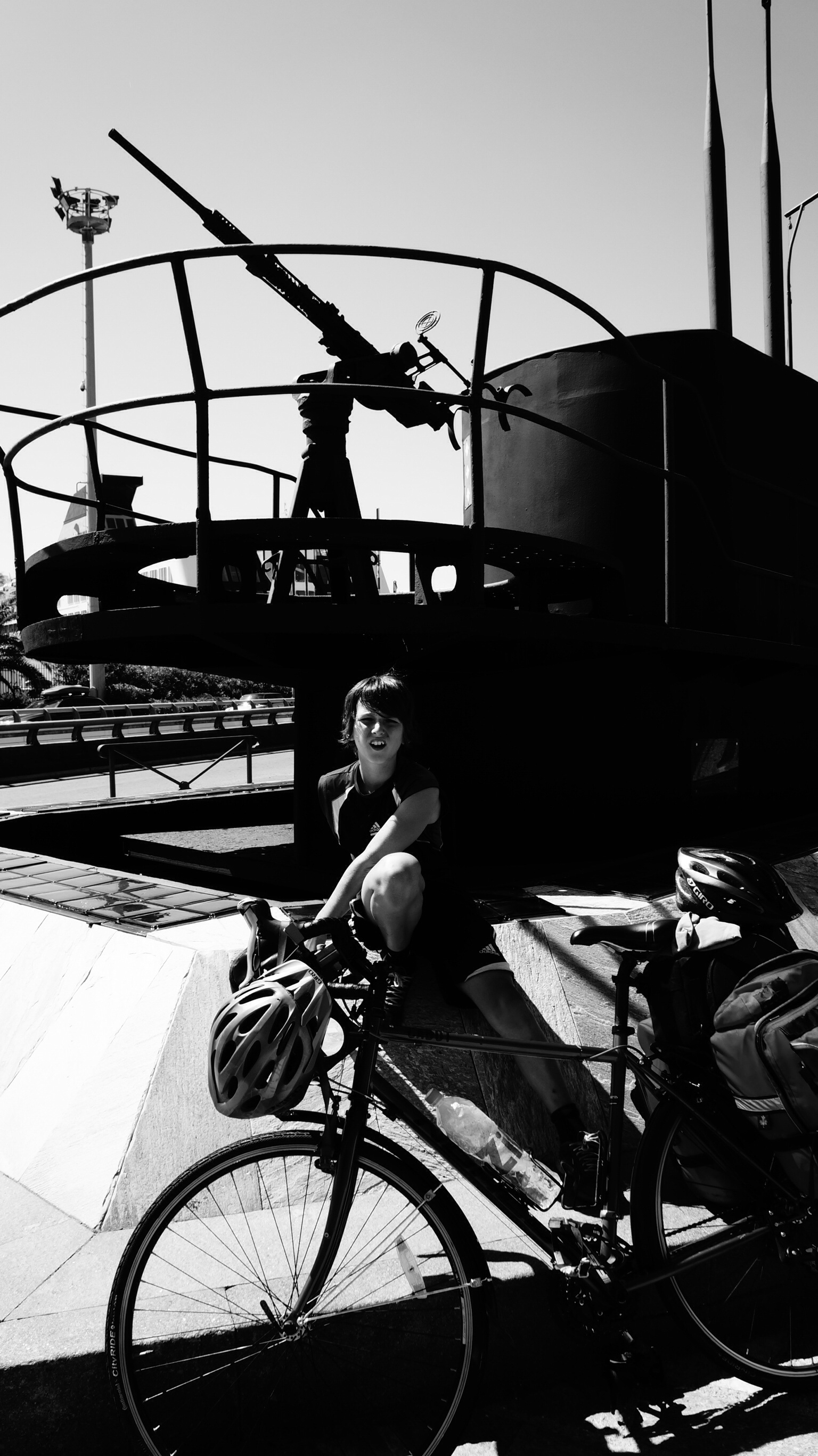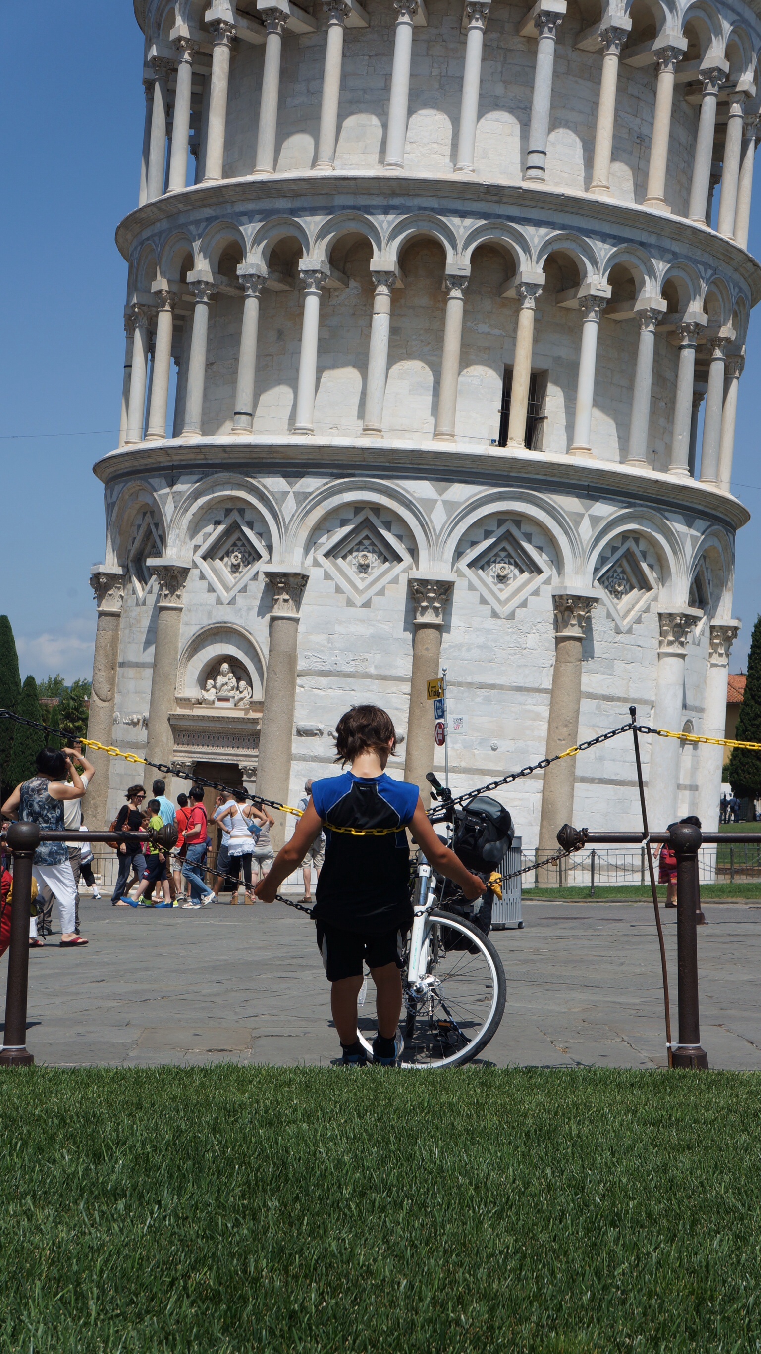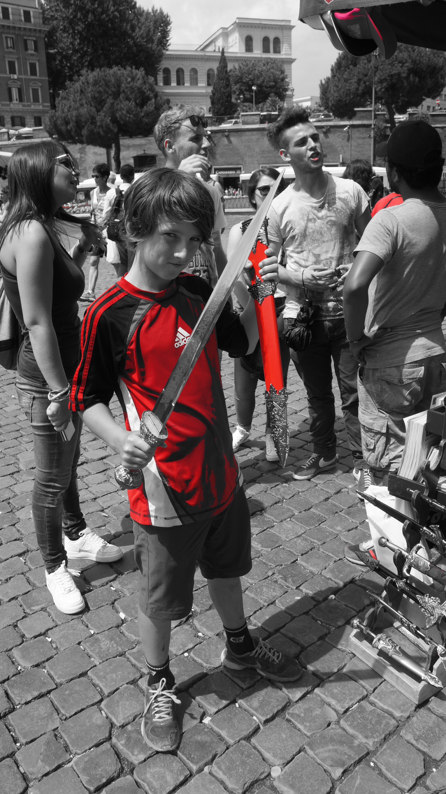Aujourd’hui Mika a aperçu des épées en métal vraiment très cool. Ils les vendent à peu près partout dans les dizaines de stands de gogosses de la ville. Mika a l’art de se mettre une idée dans la tête et ne pas lâcher. Aujourd’hui, il lui faut une épée et il est prêt à mettre 35 euros la dessus. Comme si on en avait pas assez à voir, il faut courir après cette affaire là. À tout les coins de rue on trouve de ses stands et inévitablement, Mika touchent toutes les épées, le regarde et demande les prix. Will it ever end? Finalement, il fera l’acquisition d’un de ces objets qu’il brandira autour de lui le reste de la journée. (Va t’on vraiment traîner ça, avec nous, sur nos vélos?)