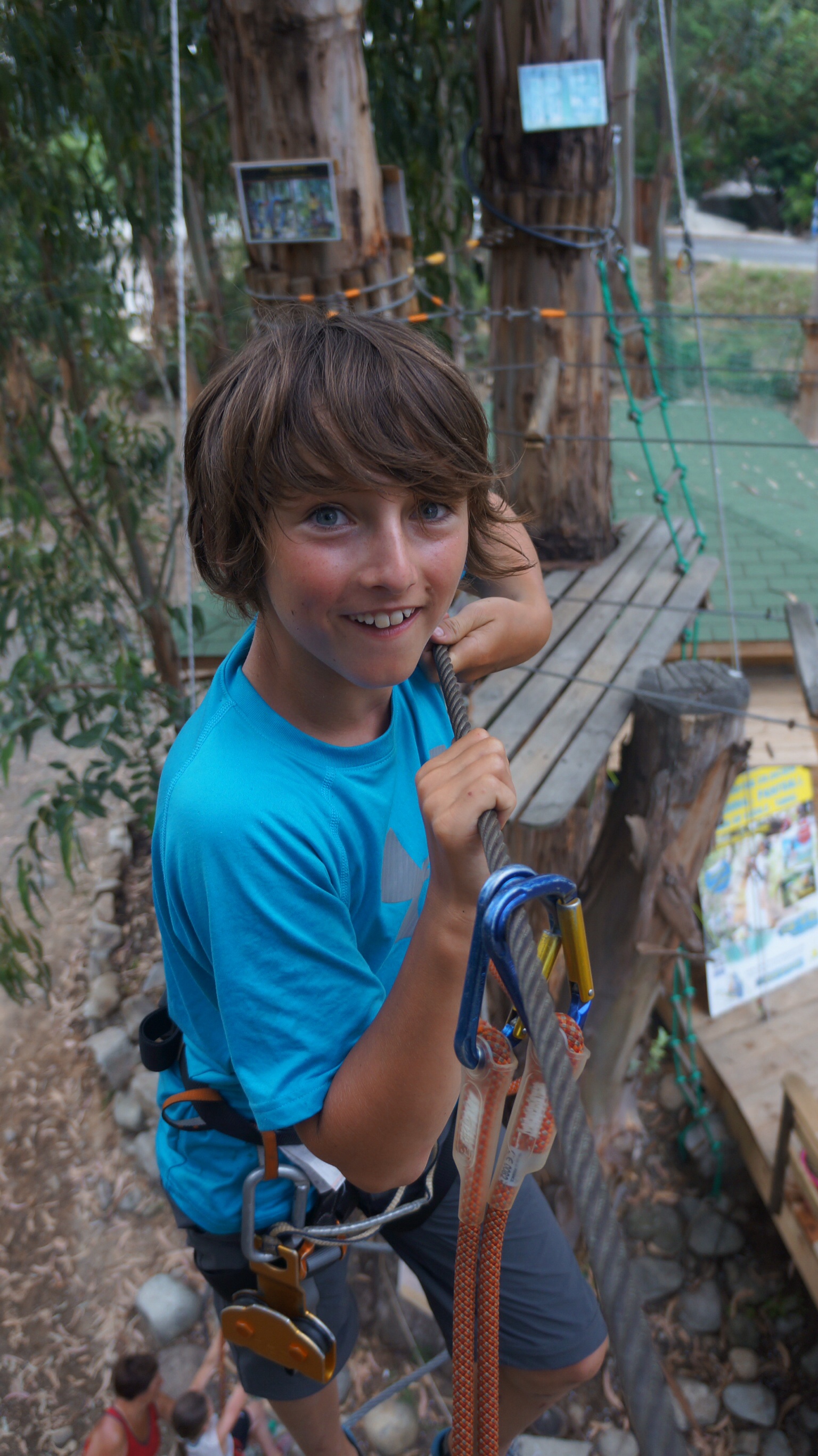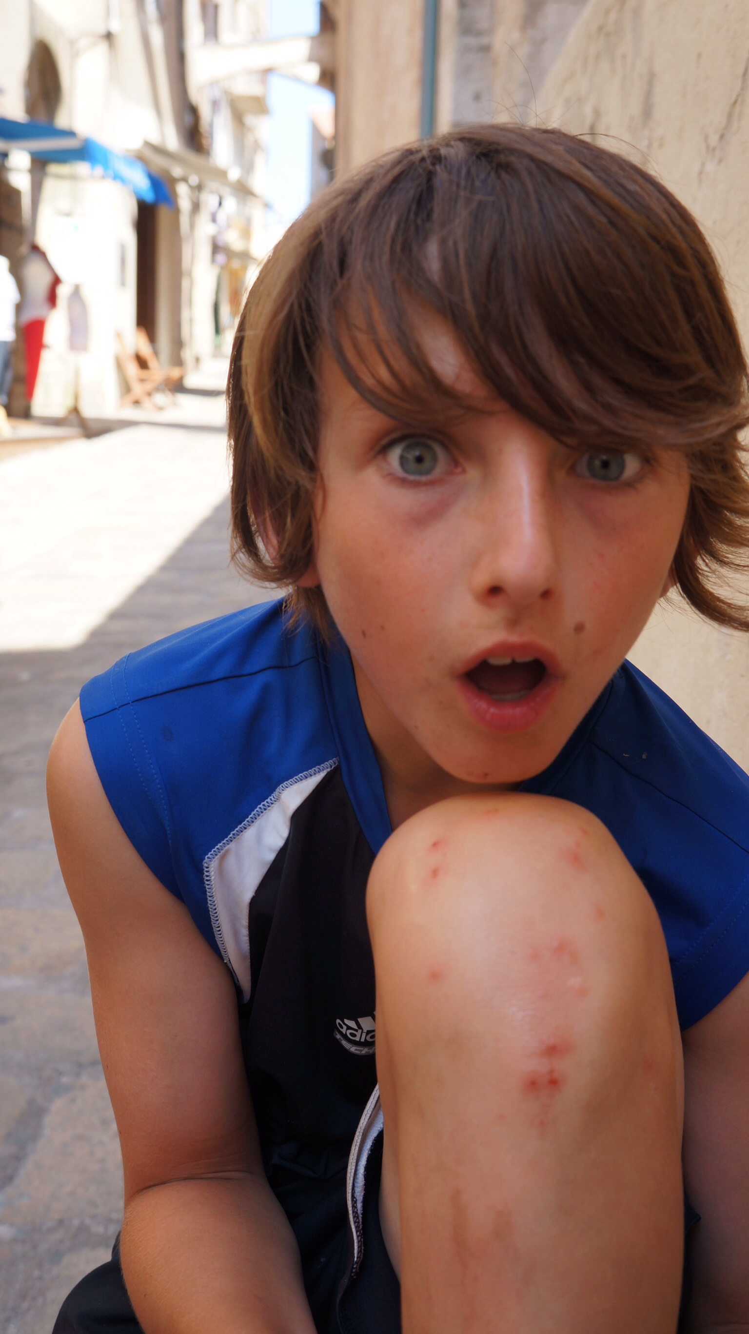Un 25 kilomètres aujourd’hui avec de plus petites montagnes mais plus nombreuses. Les pentes sont aussi beaucoup moins douce ce qui en font des ennemis redoutables. La différence avec l’Espagne, c’est la chaleur. On crève littéralement et on doit absolument rouler torse nu ou avec une brassière de sport. Il y a vraiment risque de surchauffe. On se tape donc des montées pour environs 350 mètres aujourd’hui se qui nous donne près de 1500 mètre en trois jours. On doit dire que le plus dure, aujourd’hui, c’est l’accumulation. On arrive au camping de Bonifacio et nous décidons que nous devons prendre une journée de congé demain pour le moral des troupes (Et ça inclu les parents).