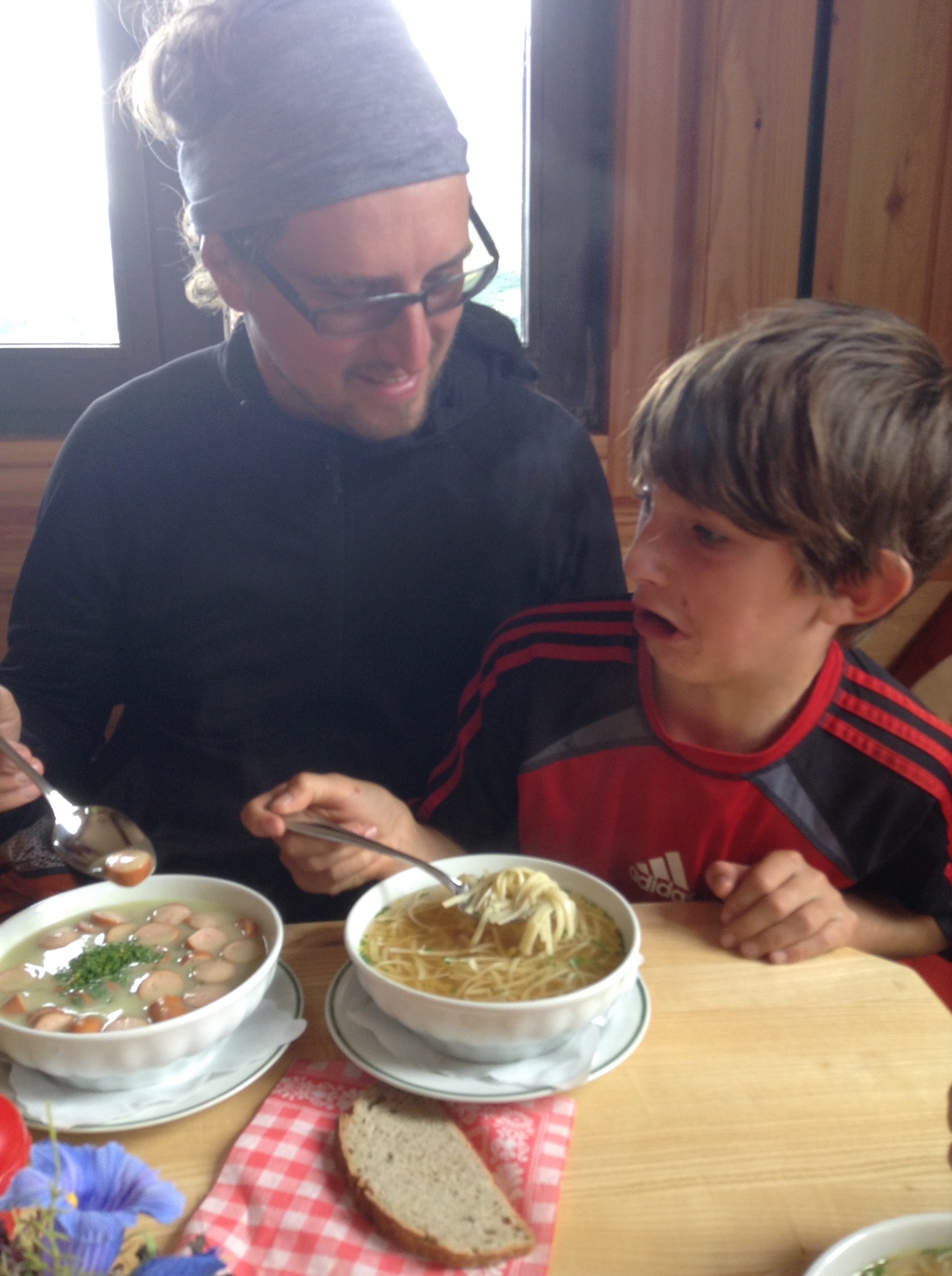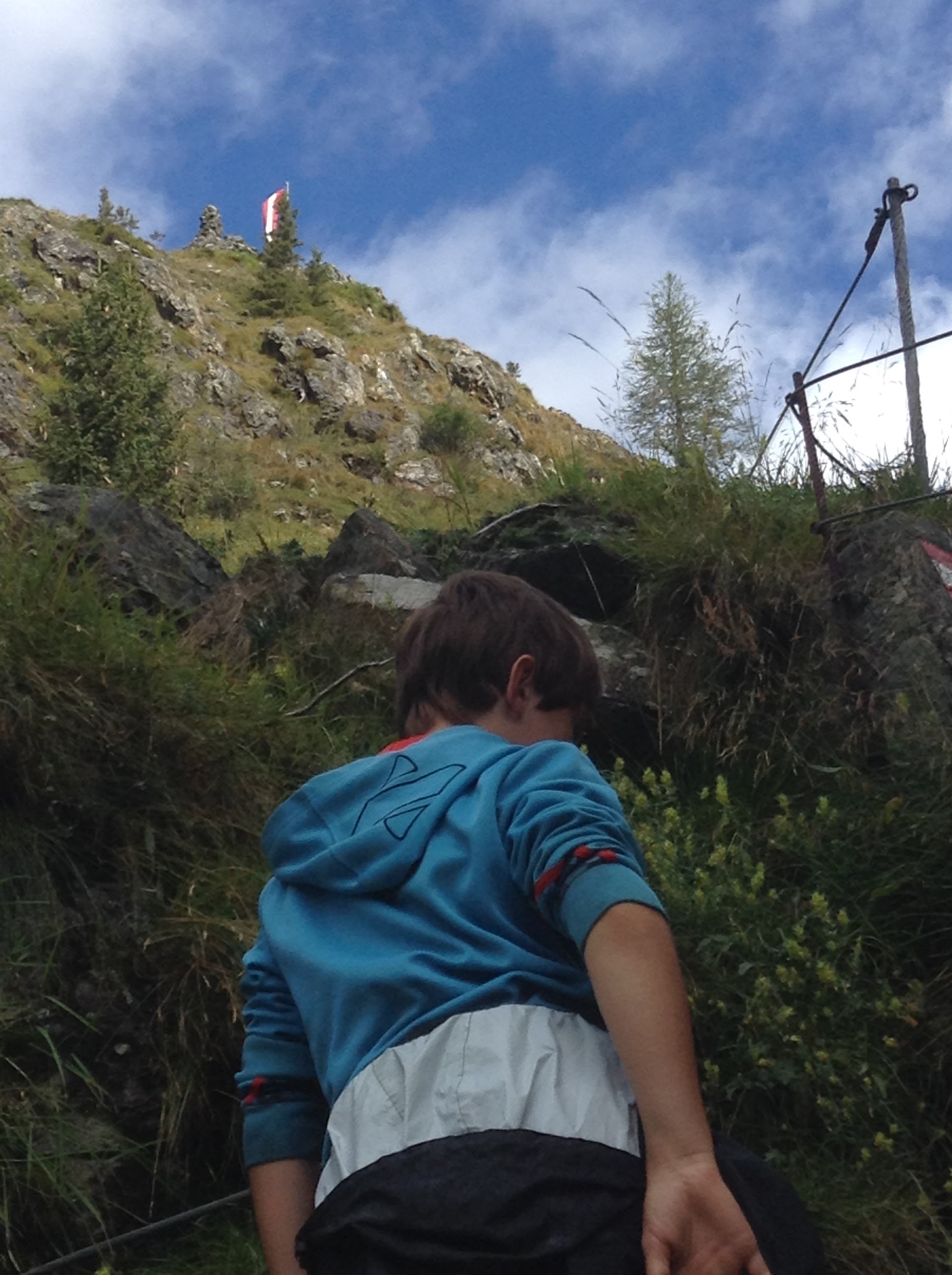 De retour sur la route à un rythme beaucoup moins soutenu. C’est « plate » mais le vent nous a viré dans la face. On fini la route avec moins d’enthousiasme entre à Villach en suivant la rivière. Ça nous amène en ville dans un très belle endroit. La ville est tranquille et très jolie. Une belle rivière qui la traverse, de jolies terrasses dans un quartier piétonnier et des montagnes au loin. On se demande si on dort ici. Pour décider, il y a rien comme aller faire un tour à la gare. En effet, on considère notre défi relevé. On est à moins de 20 kilomètres de la frontière Slovéne, ce qui confirme que nous avons traversé l’Autriche du nord au sud.